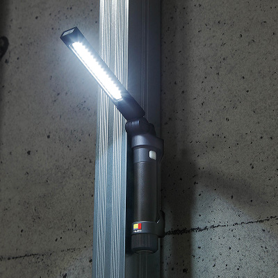 ネオジム磁石&セフフック付。縦・横2方向に最大180°可動するセフハンディワークライト。