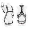 肩や腿、胸など複数のベルトにより、墜落時に身体がフルハーネスから抜け出すことを防止します