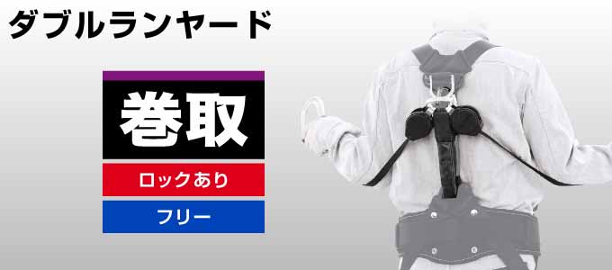 ダブルランヤード|巻取式 ロックなし フリー両巻