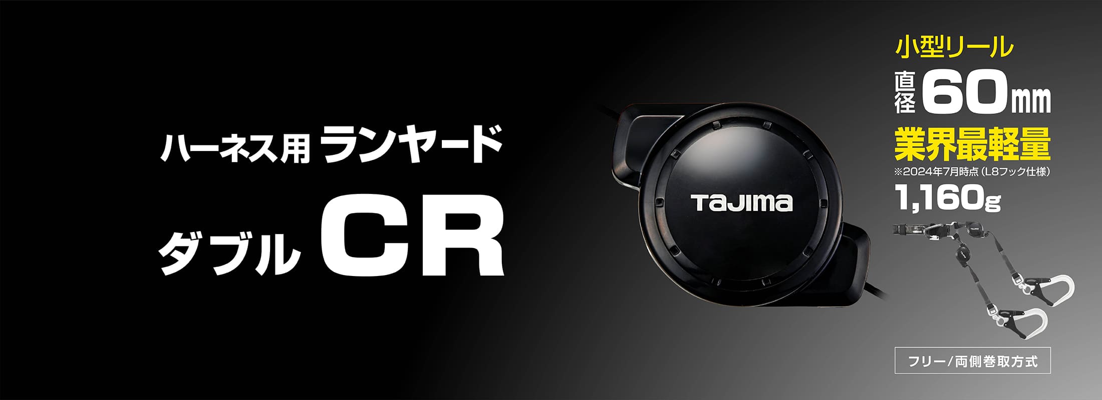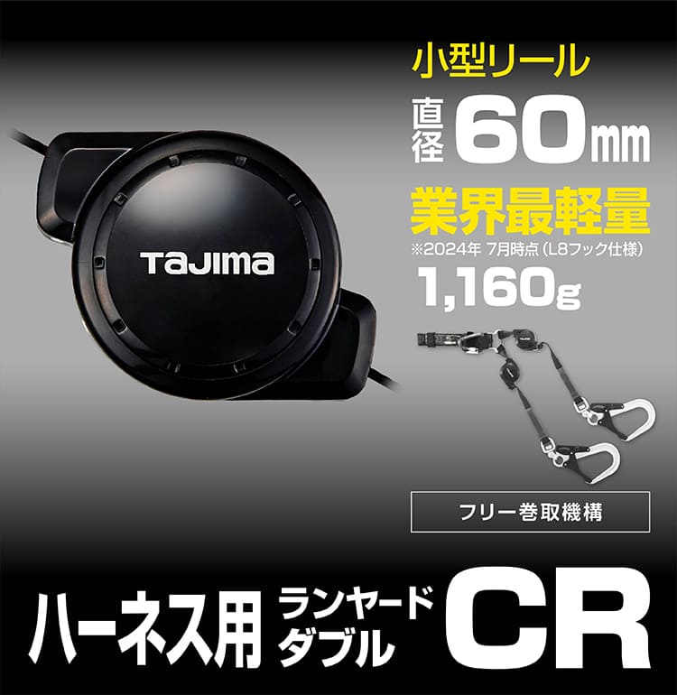 新規格対応、ランヤードが引っ掛かりにくく長さも調整可能な超小型リール式ダブルランヤード。