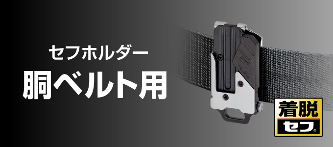 腰周りのセフツールを付けて腰の負担を減少!ビス式、マグネット式、クランプ式(丸型建材用)、クランプ式(脚立用)の四種をラインナップ